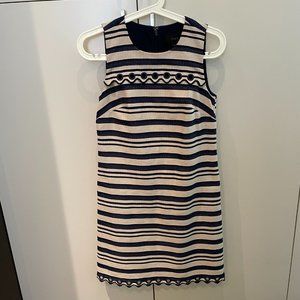 J. Crew Navy Blue Striped Scalloped Trim Grommet Shift Dress Size 00
