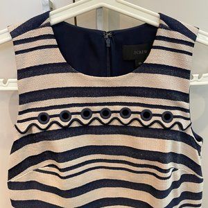 Selling a pristine gorgeous J. Crew Navy Blue Striped Scalloped Trim Grommet Shift Dress Size 00 Sleeveless. This was bought but never worn!