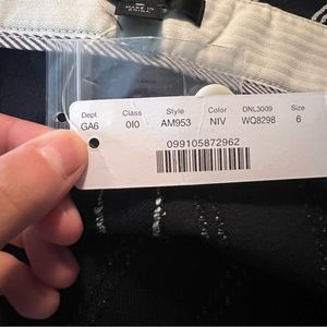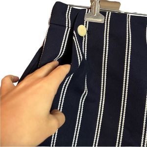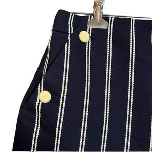 Stylish navy shorts with white stripes. Button details on the front. Perfect for casual outings.