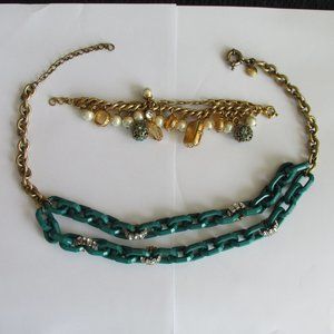 J Crew Necklace & Bracelet Goldtone Rhinestone Faux Pearl Teal – Autumn Colours