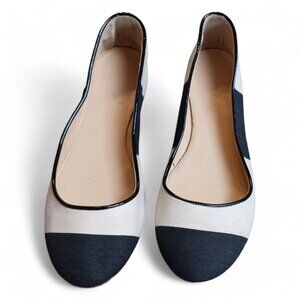 J Crew Nora Black White Color Block Minimalist Fabric Ballet Flat Shoes Size 8