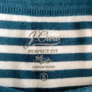J. Crew Perfect-Fit Striped Ringer Tee: Retro style tee with cute ringer detail. Blue and white striped crewneck with short sleeves. Medium weight knit with stretch.