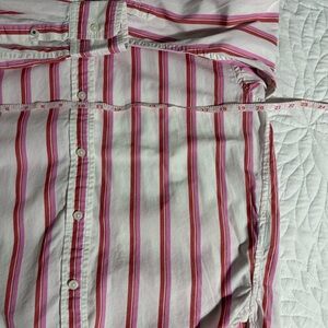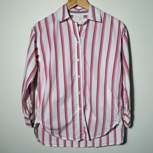 J. Crew Pink & White Striped Button Down Shirt 100% cotton size Small oversized