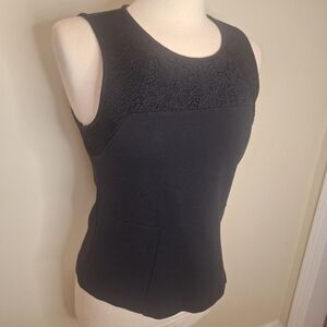 J. Crew Ponte Knit Peplum Crochet Detail Tank Black Size Small
