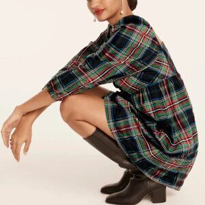 J Crew - Puff-sleeve mini dress in Stewart tartan - Size 18