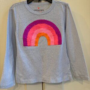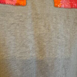 Rainbow sequin long sleeve T shirt. There is an small area of slightly thinned material in the front (see last photo)