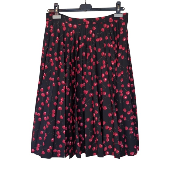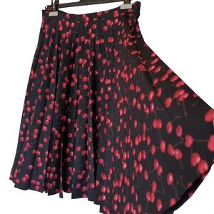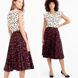 J Crew Red Black Cherry Print Pleated Midi Skirt
