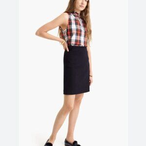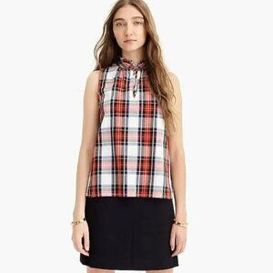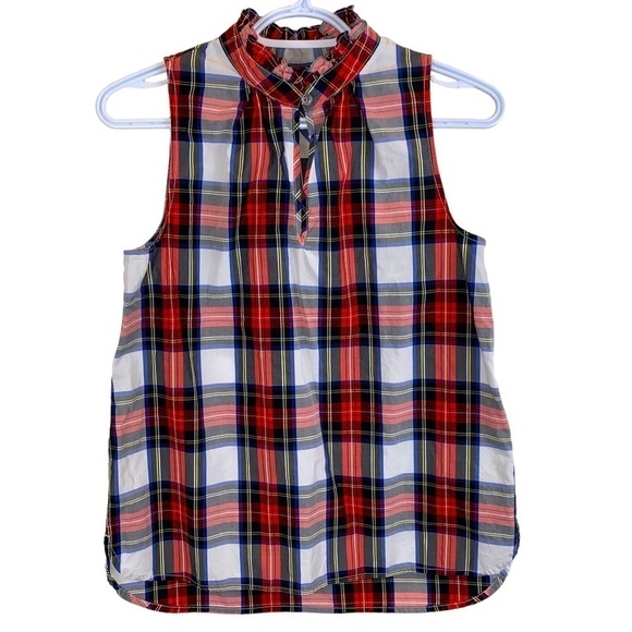 J. Crew Red Navy Stewart Tartan Plaid Ruffle-Neck Sleeveless Top sz 0 Christmas