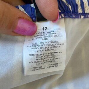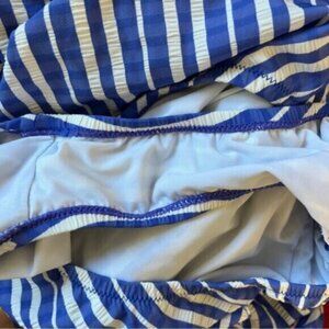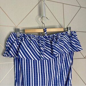 J. Crew Ruffle Bandeau One-Piece Swimsuit Puckered Stripe in excellent pre worn condition. A flirty one-piece swimsuit finished with ruffles in a preppy puckered fabric that adds the perfect amount of texture. Please see all photos.