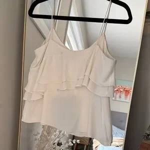 This elegant white ruffle top is perfect for any occasion. Its delicate design adds a touch of sophistication to your wardrobe. Ideal for pairing with jeans or skirts for a chic look. Size 6 from J.Crew. Excellent condition.