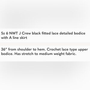 J Crew SZ 6 black fitted lace detailed bodice with A line skirt back zip NWT