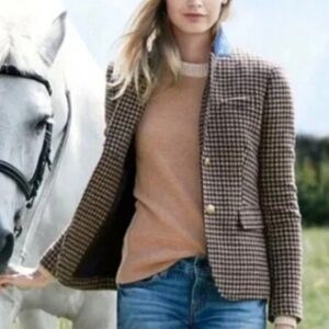 J Crew Schoolboy Wool Houndstooth Blazer - Women's Size 6 - Tan Burgundy