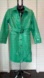 Vibrant green trench coat with a glossy finish. Includes a matching belt and button closure.