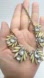 Material: Gold-tone metal, champagne-colored main stone, off-white crystals