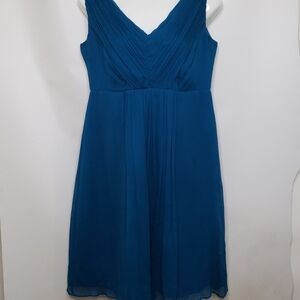 J Crew Silk Dress Lined V Neck Back Sleeveless Teal Blue Size 12 Petite