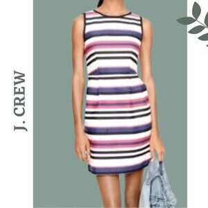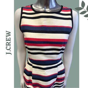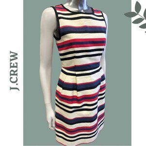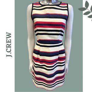 J. Crew Sleeveless Stripe Cotton Scuba Dress Lined Cinch Waist Red Blue Size 4