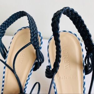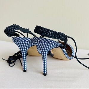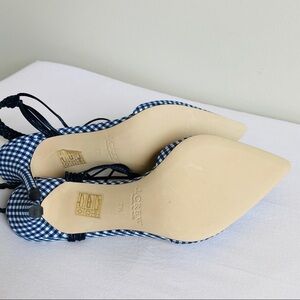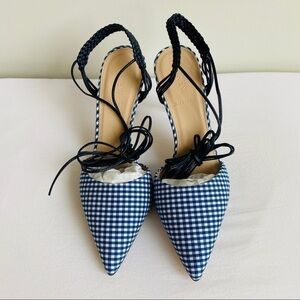J Crew Slingback Gingham Heels Ankle Tie 7.5 NEW