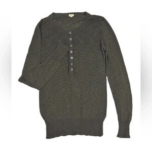 J. Crew Slub Linen-Cotton Henley Crewneck Long Sleeve Sweater Size Medium