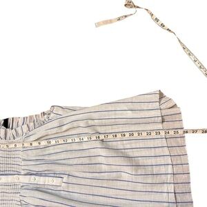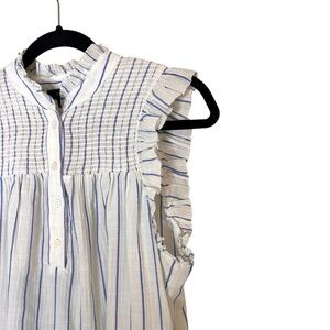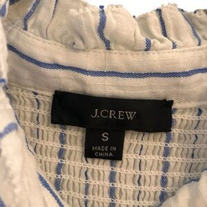 J. Crew Smocked Ruffle Gauze Top-White Stripe- Size Small