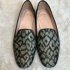 J. Crew loafers fabric black & gold leopard print SZ 8.5.
