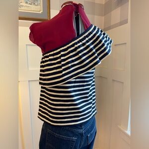 J. Crew Striped Off-Shoulder Top in Navy and White Size XXS