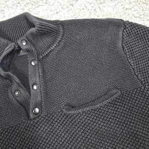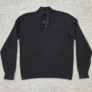 J Crew Sweater Mens Medium Blue Thermal Knit Long Sleeve 1/4 Snap Cotton
