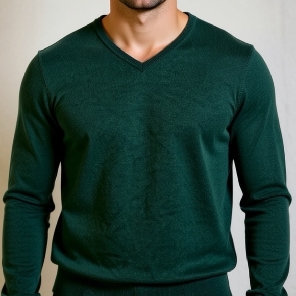 J Crew Sweater Mens Size Large Hunter Green 100% Merino V-Neck Slim Fit