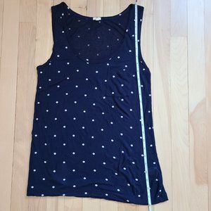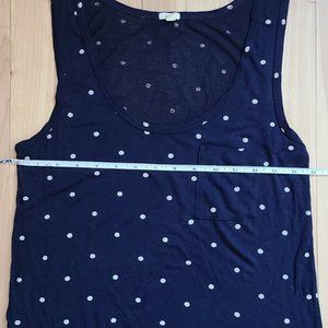 J. Crew tank top in navy with white polka dots. Cute with a front pocket. Very comfortable.