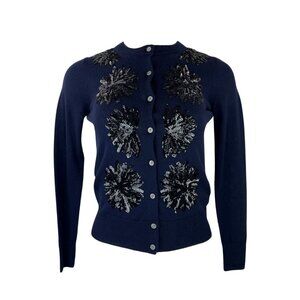 J. Crew Thin Navy Cardigan with Black Sequins