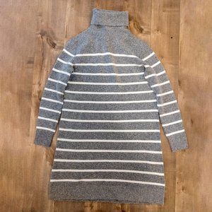 J. Crew Turtleneck Striped Sweater Dress Womens XS Grey + White Soft Fair Trade