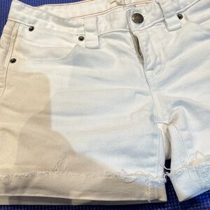 For your consideration is a pair of J.Crew white denim cut off shorts. Size 0. EUC. No stains or rips 15 “ across front waist laying flat. 99% cotton, 1% spandex.