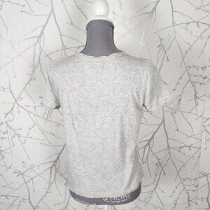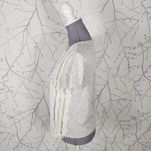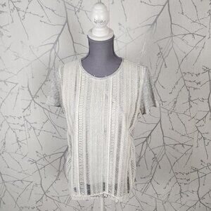 J. Crew White Gray Crochet Overlay Crewneck Top