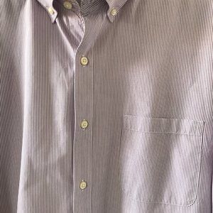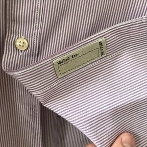 J Crew makes a really nice shirt. This a classic in fine pinstripe cotton. Nice detailing on the front placket and sideseam gusset. excellent condition