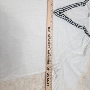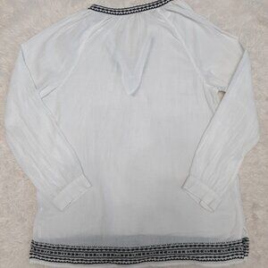 Check out this J. Crew Women's 100% Cotton White Gauzy Cotton Black Silver Embroidered Trim Split Neck Blouse Top is in very great pre-owned condition, no rips or stains on it