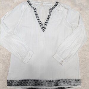 J. Crew Women's 100% Cotton White Gauzy Cotton Black Silver Embroidered Blouse M