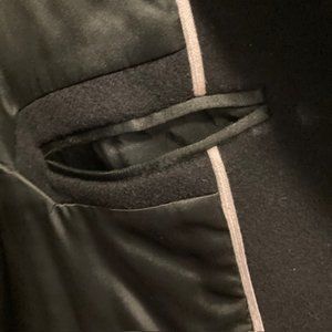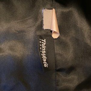 Black single-breasted woolen women's pea coat in excellent condition. Thinsulate lining, still excellent, including sleeve openings. All original buttons. Very stylish. Measurements: 20 inches pit-to-pit, pit to hem 26.5 inches, arm 25 inches, across back shoulder a little over 16 inches.