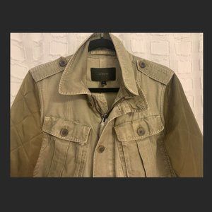Beautiful and durable J Crew Downtown Field Jacket. Canvas body with quilted sleeves. The perfect jacket for spring and fall in a gorgeous deep moss colour.