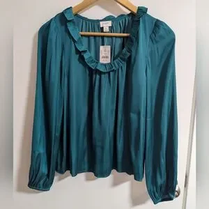 Elevate your wardrobe with this elegant green ruffle top from J. Crew. Perfect for any occasion, this top combines style and comfort effortlessly.