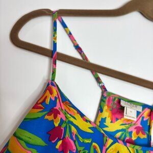 J. Crew Women’s Medium Floral Blue Spaghetti Strap Top Tank Hawaiian Summer