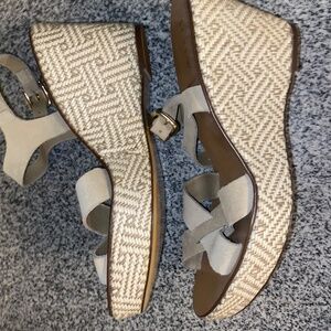 Step out in style with these J. Crew cream wedge sandals. Perfect for any occasion, these shoes offer both comfort and elegance.
