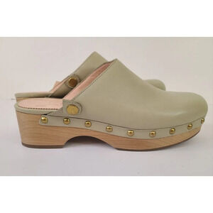 J Crew Wood Clogs Women's 9 Size 8.5 Soft Olive Green Leather Studded