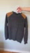 DESCRIPTION: Classic Cotton Crew neck Ribbed Knit Sweater with Standout Leather Shoulder Patches. Grey.