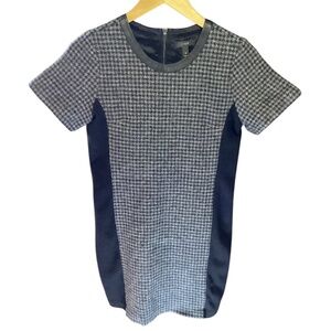 Super cute wool houndstooth J. crew dress with genuine leather trim and stretchy side panels. Short sleeves.