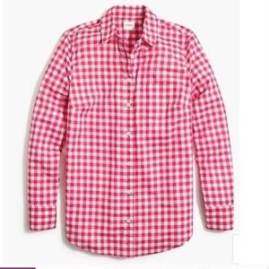 J. Crew factory Boy Fit Perfect Shirt Red White Gingham Plaid Button Up Down XS