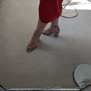 Those beautiful floral shoes will fit with all your clothes. I have worn them but they are in excellent condition.