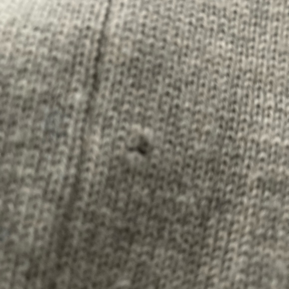 average pre-loved condition- there’s a small hole on the left side as seen in last pic. There’s also some very minor piling (price reflects these shortcomings)