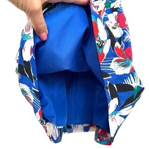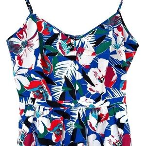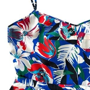 J. Crew mini dress with spaghetti straps, fitted top, fully lined, tropical floral print.