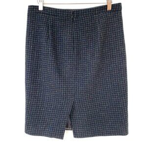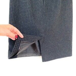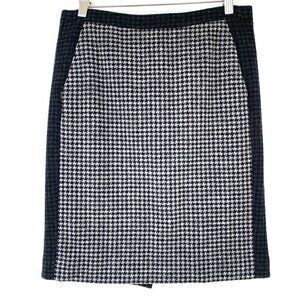 J. Crew pencil skirt in a wool blend, two-tone houndstooth pattern, fully lined.