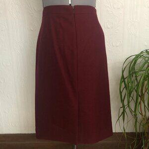 Nice quality skirt, lined, in a wool blend (not itchy). The skirt was never worn. It is as new. The colour is beautiful and perfect for fall. The measurements are as follows: Waist across 16 and 3/4 inches, hips across 20 inches and length 25 and 3/4 inches.