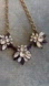 It’s made of a gold tone chain and three pendants. Each pendant looks like a purple plastic flower and a clear glass crystal bee sitting on a flower